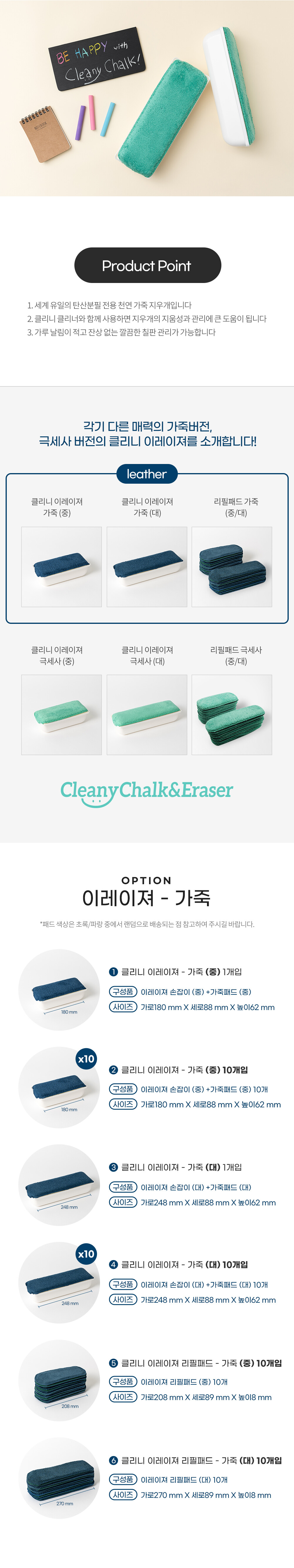 세계 유일의 탄산칼슘 분필 전용 클리니 가죽 이레이져 입니다:)